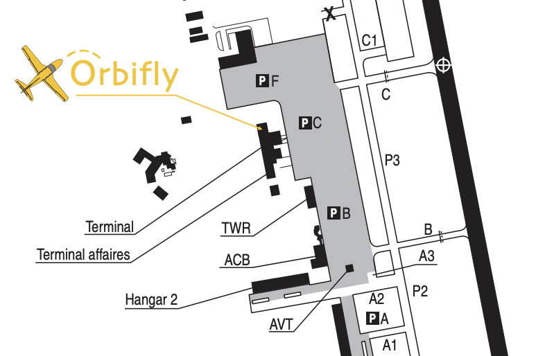 Orbifly dispose d'une base de formation pratique installée sur l'aérodrome d'Avignon-Caumont, dans le sud de la France.